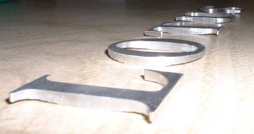 This decal replacement is made out of Aluminum and weigh ~15 grams total. The letters
