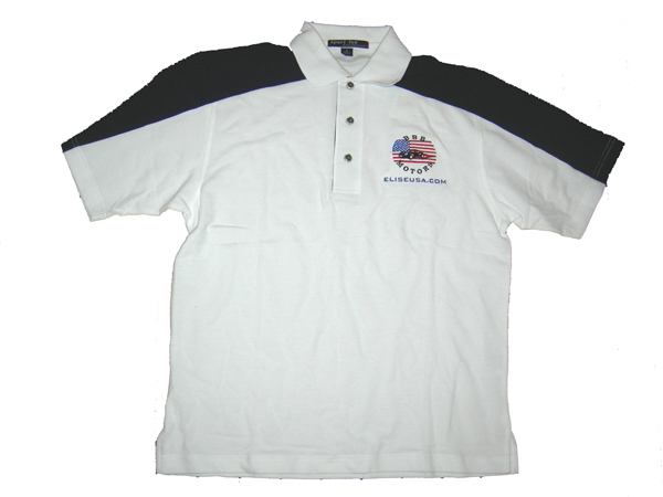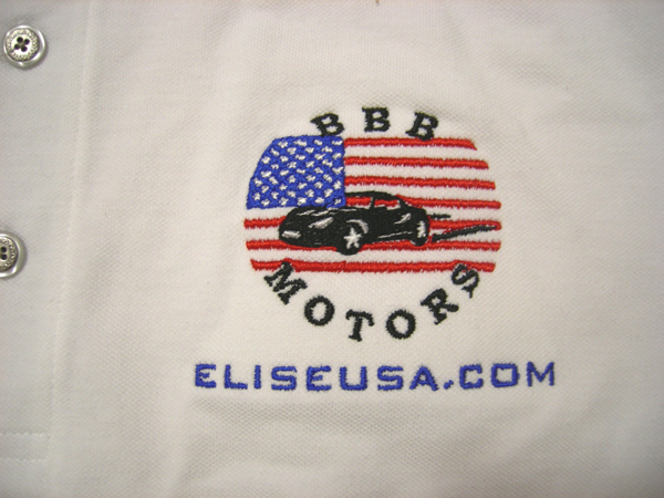 welt collar, and metal buttons. Navy on White only. Embroidered with BBB Motors logo.